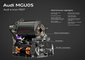 The result is called the Audi MGU05, a six-phase motor-based, single-speed drivetrain with an internal rotor concept, external magnets and high-efficiency cooling system. According to Aicher, Audi has managed significant weight savings compared with the previous unit, through the use of lightweight materials and intelligent integration with the vehicle.