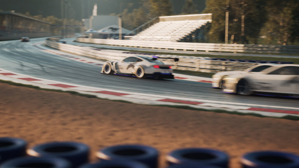On the exterior, hood pins have been fitted in addition to tow hooks at the front and rear. At the back of the car, a different exhaust system has been fitted and an adjustable rear wing features for added downforce. Other notable differences to the street legal Dark Horse S are the uprated brakes and Multimatic DSSV dampers to enable adjustable ride heights and camber settings.