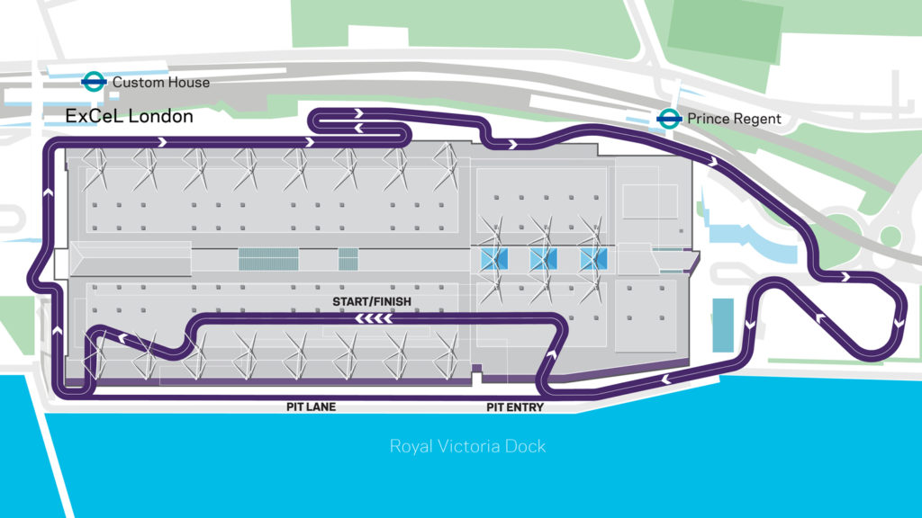 The 2.4km (1.5 mile) clockwise circuit consists of 23 corners and a starting grid located inside the ExCeL exhibition center and a run along the waterfront at the Royal Docks in East London.